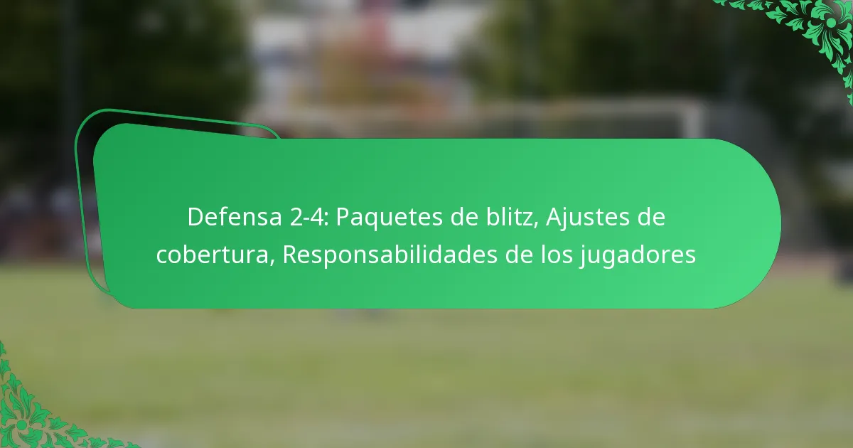 La defensa 2-4 es una formación estratégica de fútbol que cuenta con dos linieros defensivos y cuatro linebackers, diseñada para la flexibilidad y la capacidad de respuesta ante los esquemas ofensivos. Al utilizar paquetes de blitz, los equipos pueden ejercer presión sobre el mariscal de campo, mientras que los ajustes en la cobertura permiten alineaciones defensivas personalizadas para contrarrestar amenazas ofensivas específicas. Comprender las responsabilidades de los jugadores dentro de este marco es esencial para maximizar la efectividad defensiva y mantener la integridad general del equipo.