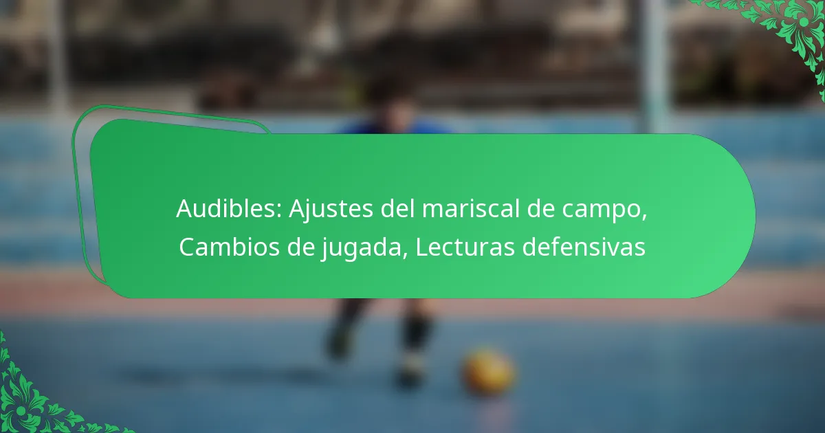 Los audibles en el fútbol americano se refieren a los ajustes realizados por el mariscal de campo en la línea de golpeo para cambiar la jugada llamada en el grupo. Estos cambios son cruciales para adaptarse a la configuración defensiva, permitiendo a los equipos optimizar su estrategia en función de las observaciones en tiempo real.