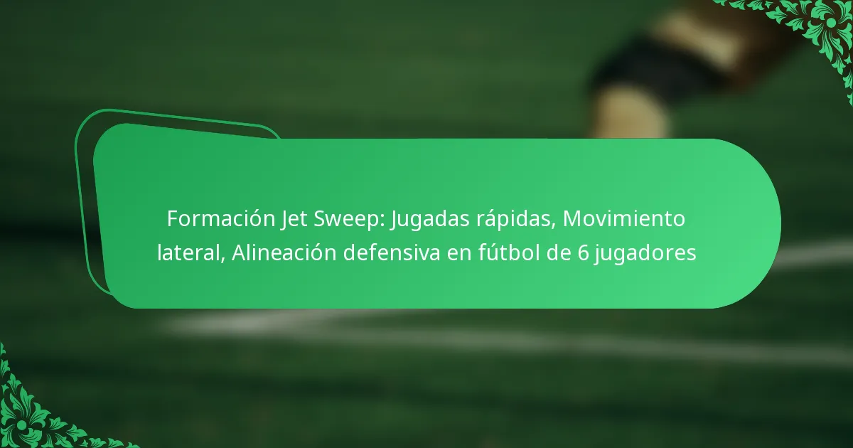 La formación jet sweep en el fútbol de 6 jugadores es una estrategia ofensiva dinámica que enfatiza la velocidad y el movimiento lateral. Al utilizar a un jugador en movimiento para recibir un pase, los equipos pueden estirar la defensa y crear espacios para ganancias significativas. Esta formación no solo capitaliza los movimientos laterales rápidos, sino que también explota efectivamente las alineaciones defensivas para maximizar el potencial ofensivo.