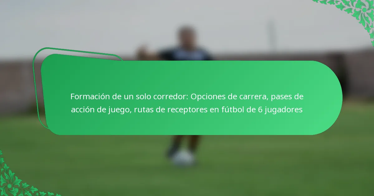 La formación de un solo corredor en el fútbol de 6 jugadores presenta un corredor posicionado detrás del mariscal de campo, lo que permite una estrategia ofensiva versátil. Esta configuración enfatiza tanto las jugadas de carrera como las de pase, creando oportunidades para tácticas ofensivas variadas.