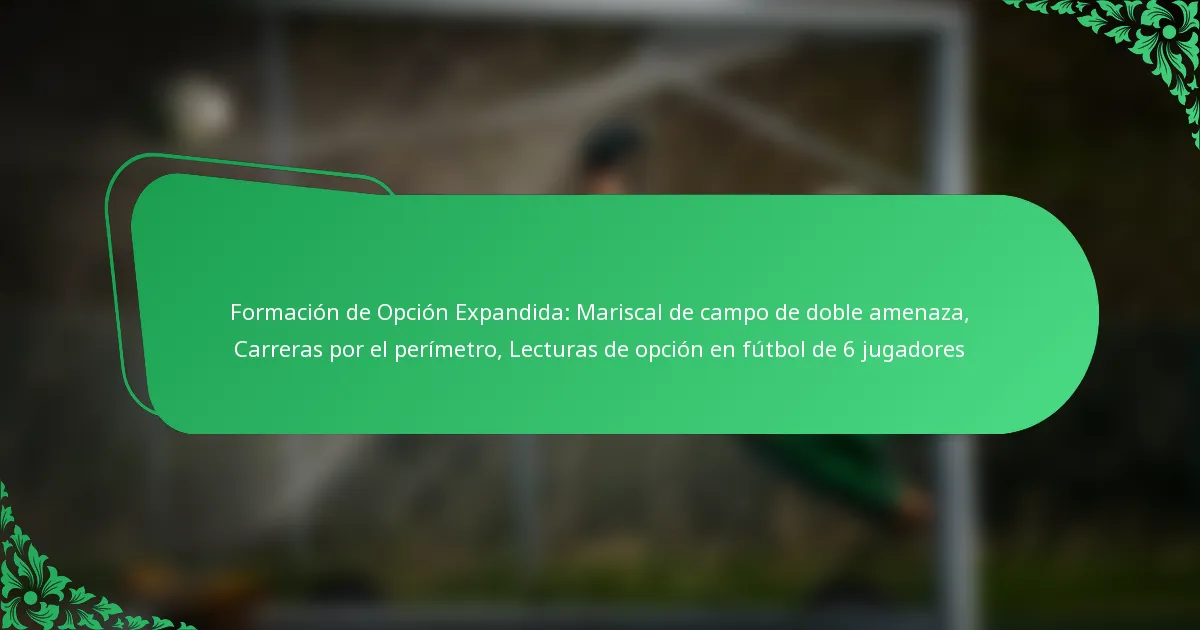 Un mariscal de campo de doble amenaza en el sistema de opción extendida es un jugador capaz de pasar y correr de manera efectiva. Esta versatilidad les permite explotar las defensas al tomar decisiones rápidas basadas en la jugada que se desarrolla, mejorando la dinámica ofensiva en el fútbol de 6 jugadores.